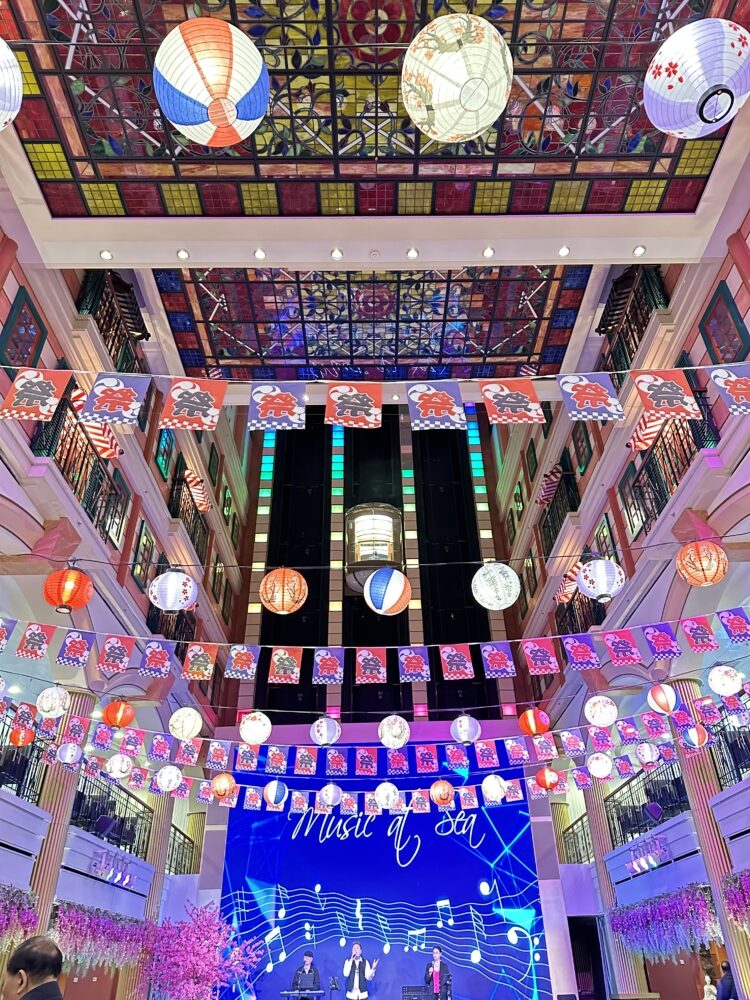 3、4月郵輪舉行期間限定的海上日本祭,不單止郵輪上有許多佈置讓旅客打卡拍照,還加設多場特別的表演和活動,例如日式傳統舞蹈表演、充氣相撲遊戲、沖繩工藝品工作坊等,還可以品嚐沖繩美饌,一定要上船感受熱鬧氣氛。