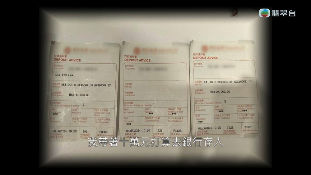 《東張西望》昨日(25日)報導一名苦主林先生月初於銀行經存鈔機存款10萬元,然而經過幾次的存鈔後,存鈔機卻突然顯示有問題,更指示讓林先生與銀行聯絡。但林先生當時沒有理會,並到第二間銀行繼續存款,但就在存款後發現其存的10萬元竟然變了9萬元,足足「被食」1萬元,於是林先生決定「報東張」。