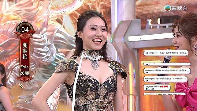 今年港姐決賽司儀罕有的以全女班上陣,上屆港姐冠軍莊子璇亦是其中一位。見她昨日身穿紫色低胸紗裙相當吸睛,初段訪問評判汪明荃有何心水佳麗,她俯身訪問阿姐時,身材更是表露無遺,效果非常澎湃,身材勁過全場泳裝佳麗,令不少網民不禁表示「錯重點」,完全無法專心聽阿姐說了甚麼!