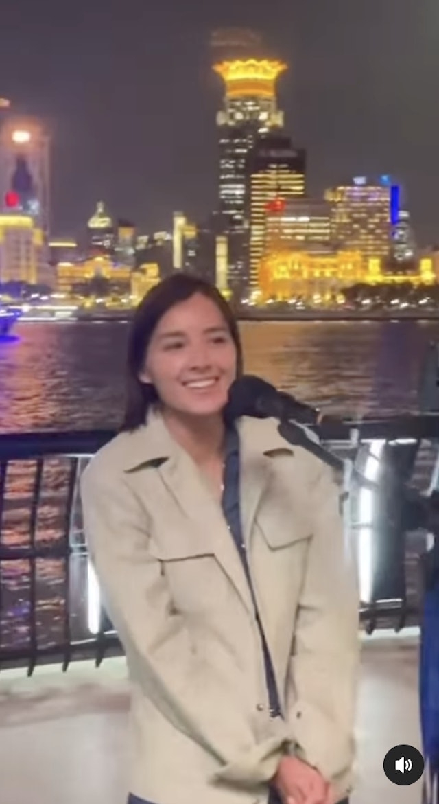 謝嘉怡日前在IG上發佈了一條在上海外灘街頭唱歌的影片,並以英文留言指:「還有哪裡比在上海灘更適合唱《上海灘》?這首歌將永遠貼近我的心,因為它是我香港小姐之旅的結束,但卻是我進入娛樂圈瘋狂之旅的開始。自從在舞台上唱過之後,我就沒有在公共場合唱過這首歌,所以我想在這首歌的故鄉唱才對,P.s.上海昨晚11度」