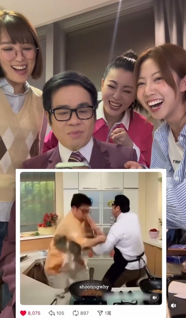 影片被瘋傳後,昨日(10日)前TVB小花陳欣茵就有在threads出片,除找來安德尊回應事件,更找來孫慧雪、尹詩沛向安德尊「逼供」,並配文指:「開拖係真㗎!!!(安德尊當事人親自回應不和事件 大王真實投訴:做咩搞到佢咁肥」。從陳欣茵上傳的片中所見,三人要求安德尊回應事件,孫慧雪更指安德尊出手「好狼」,而安德尊亦相當識玩,說到:「呢條片⋯⋯早應該攞出嚟啦!」