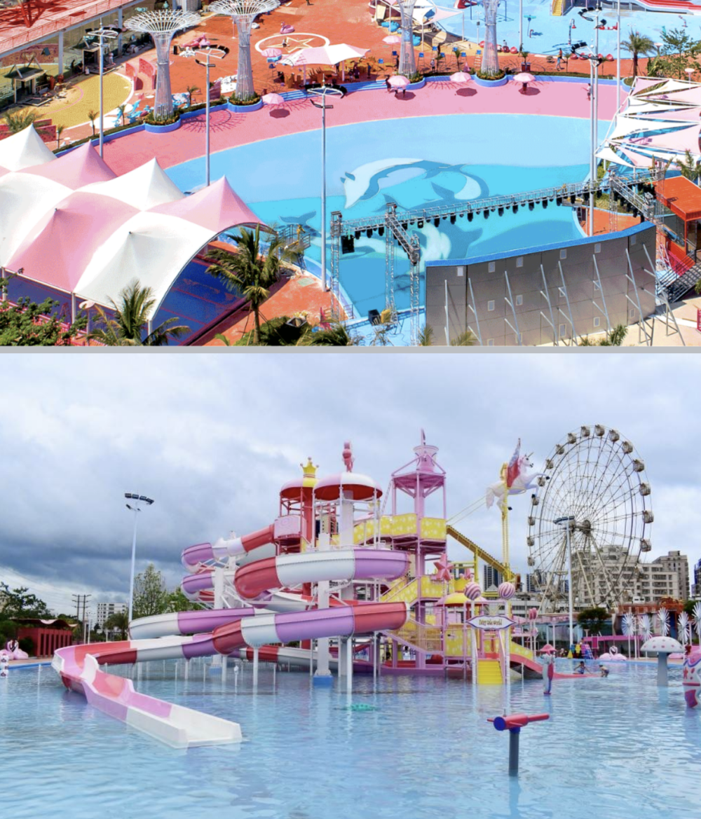 星高度夢想水世界強勢回歸!佔地三萬平方米的粉紅色主題水上樂園!匯集大型水寨、自拍場景、造浪池、彩虹滑梯等多個主題區域,非常適合玩水及拍照打卡。