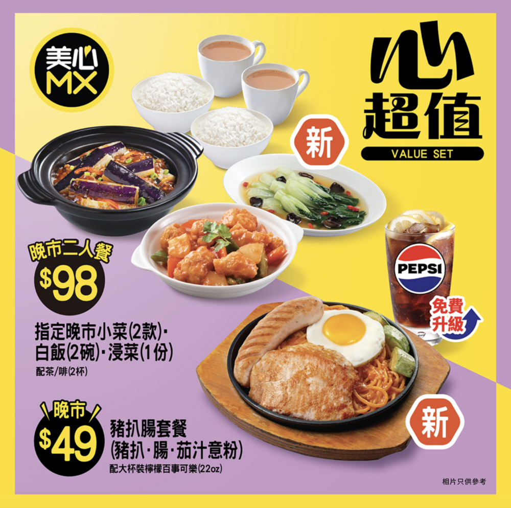 4.美心MX晚市優惠|$98兩款小菜二人餐!長者再減$6