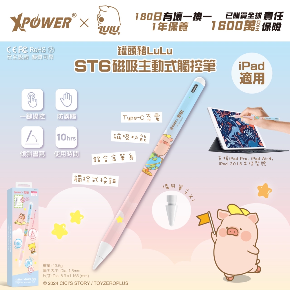(1)ST6磁吸主動式觸控筆(Apple iPad專用)
