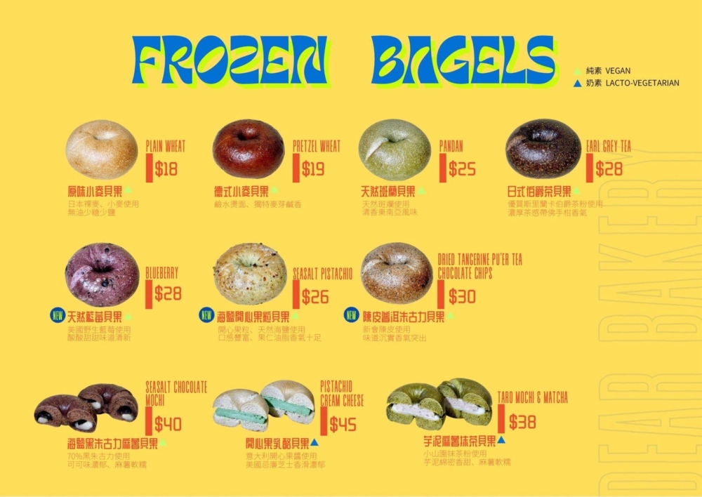 Dear Bakery(Kiosk 20A, L4):這間本地品牌以其創新的手工麵包和精品咖啡聞名,特別是採用少糖少鹽純素配方製作的日式貝果,絕對是麵包控不能錯過的新據點!