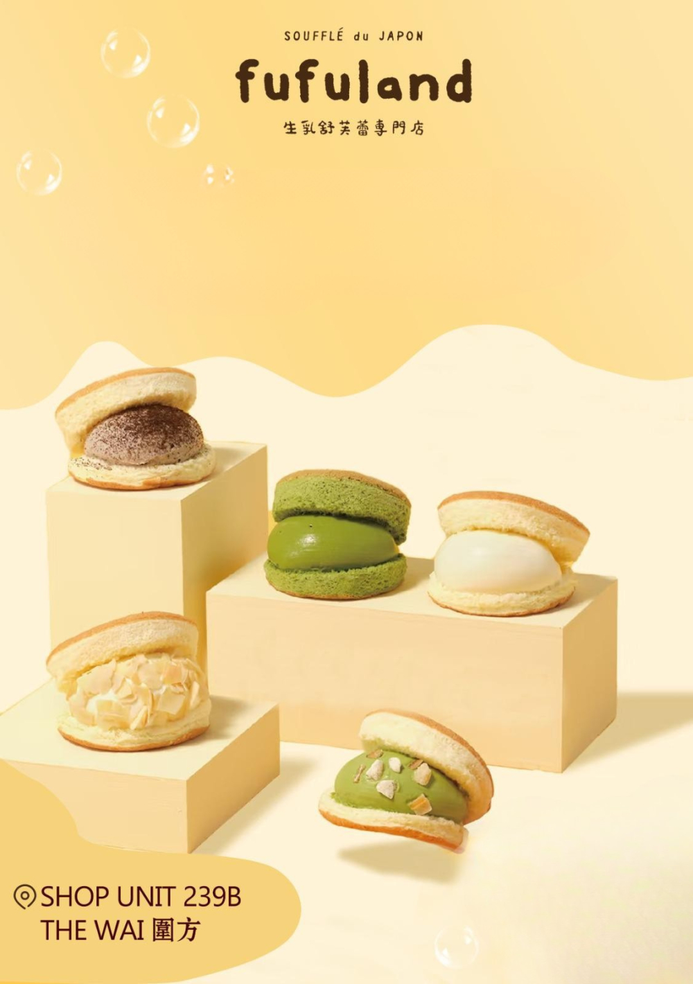 fufuland 生乳舒芙蕾專門店(239B,L2):專門提供口感輕盈、入口即化的生乳舒芙蕾,為甜點愛好者帶來極致享受。