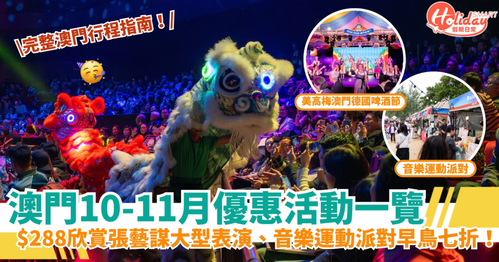 今年10-11月,澳門從傳統文化、頂尖藝術、搖滾音樂、戶外運動到環球美食,都為大家準備了連串精彩盛事,活動多得可以從月初玩到月底!小編已經為您整合好5大必玩盛事指南,立刻去睇,規劃一個完美的澳門旅程吧!