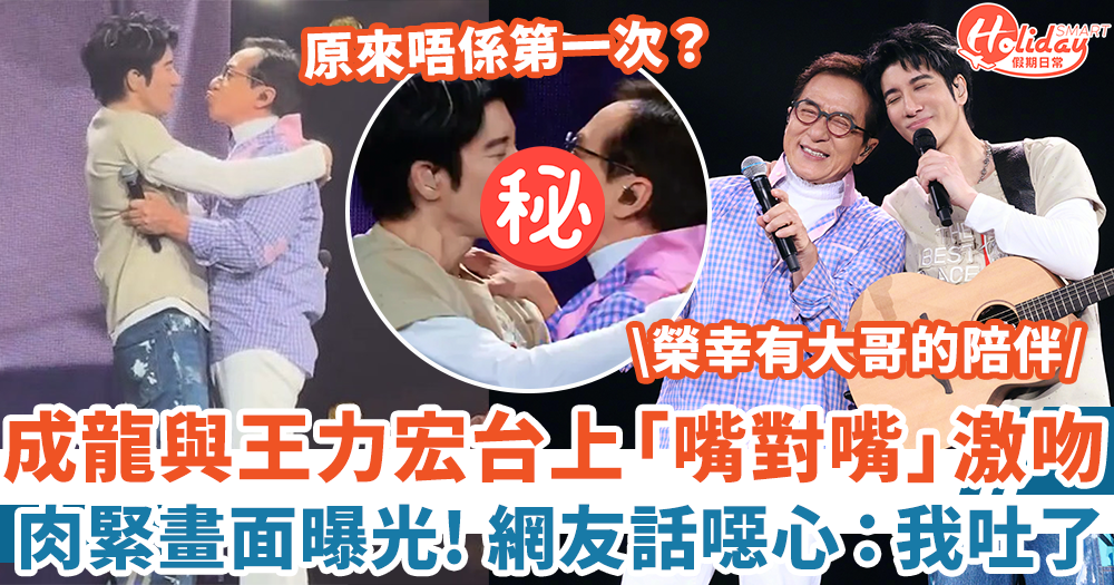 成龍與王力宏台上「嘴對嘴」激吻 網友話噁心:我吐了!