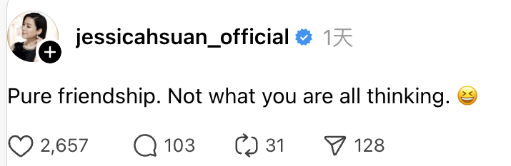 不過或許是見群情洶湧,宣萱本人亦很快上水在Threads上以英文寫下:「Pure friendship. Not what you are all thinking.(純友誼,非大家想的那樣) 」,直接否認了戀情揣測。然而儘管宣萱已出面澄清,但亦有不少粉絲熱情未減,反而鼓勵道:「Everything starts from friend zeh, don't be shy」(凡事都由朋友開始,不要害羞)、「但真係好襯wo」等。