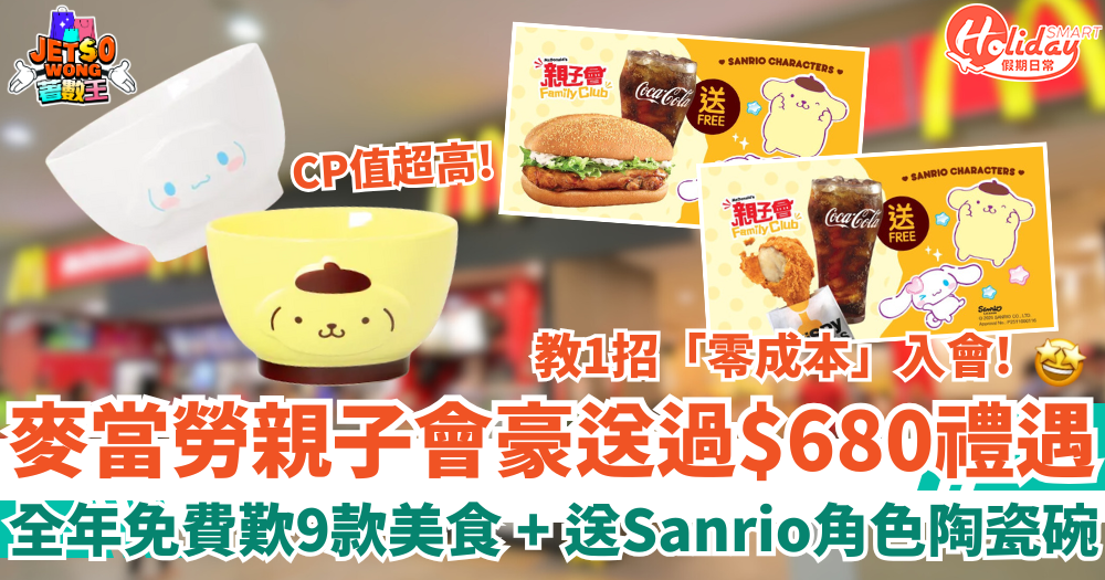 【麥當勞親子會2026】全年免費歎9款美食 + 送Sanrio角色陶瓷碗!教1招「零成本」入會!