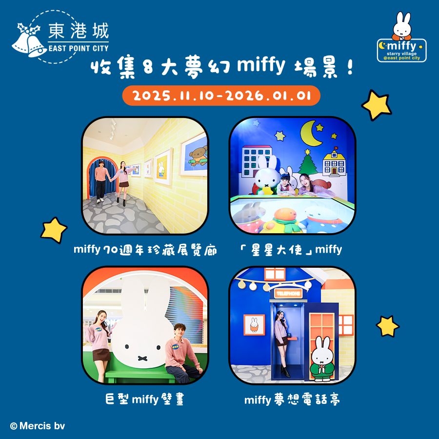 - Miffy粉絲見面會|2025年11月15、23、29日;12月6、14、25、26日;2026年1月1日|下午2:00 - 下午3:00