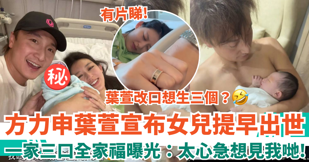 方力申葉萱女兒提早出世 一家三口全家福曝光:太心急想見我哋!