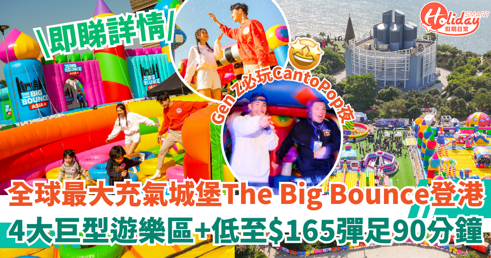 今個農曆新年,The Big Bounce——全球最大充氣彈跳派對強勢回歸啦! 一連17日登陸香港西九文化區藝術公園大草坪!逾10萬平方呎的彈跳樂園等你來挑戰,四大超巨型充氣遊樂區,包括高達12米的彈床同幻影泡泡體驗!今年新增GenZ最愛的CantoPop夜晚派對及動漫Cosplay日,更有型男夜晚同你一齊大玩城堡,Gen Z、動漫迷絕對不可錯過!限時早鳥優惠低至$165,就可以彈足90分鐘,超值又好玩!快點即看詳情!