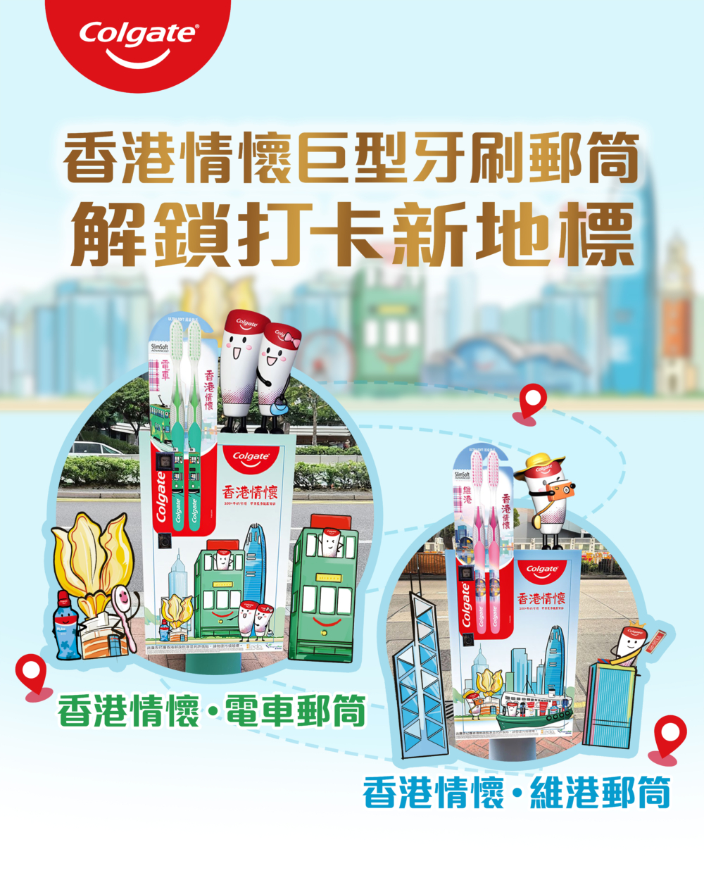 高露潔深知香港人熱愛打卡!所以誠邀全港市民一同參與這場盛大的「集郵」行動。為了將這股收藏熱潮帶入社區,並讓「香港情懷」伴隨健康笑容傳遍每個角落,由 2026年1月12日至2月25日,高露潔將於全港九新界多區,打造2款充滿本土特色的「香港情懷」主題打卡郵箱 - 「電車主題」:復刻百年叮叮車的經典魅力,「維港主題」:展現東方之珠的標誌性海岸線;透過郵箱上的二維碼,更可獲得產品優惠券!