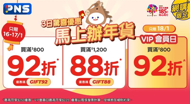 (只限1月16-17日) - 優惠3-VIP會員日享92折