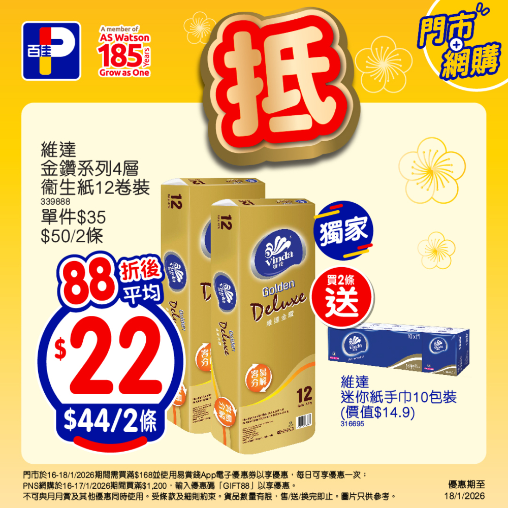 百佳超市優惠|限定三日享88折 門市買滿$168即享