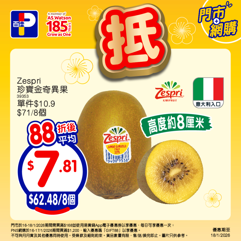 【百佳超市優惠】一連三日88折!3大優惠同步登場!低至$7入手珍寶金奇異果