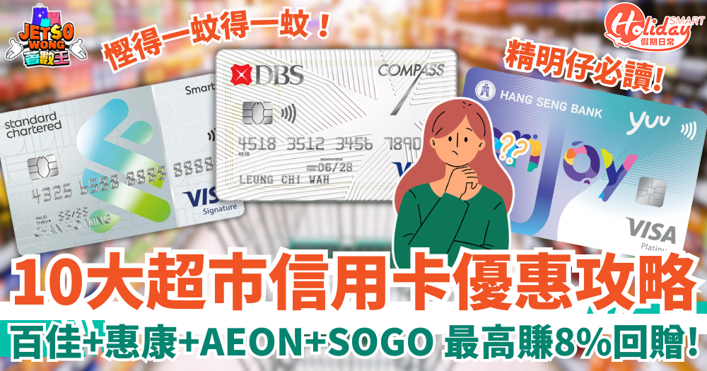超市信用卡優惠2026|10大信用卡消費回贈!百佳/惠康/AEON/SOGO 最高賺8%