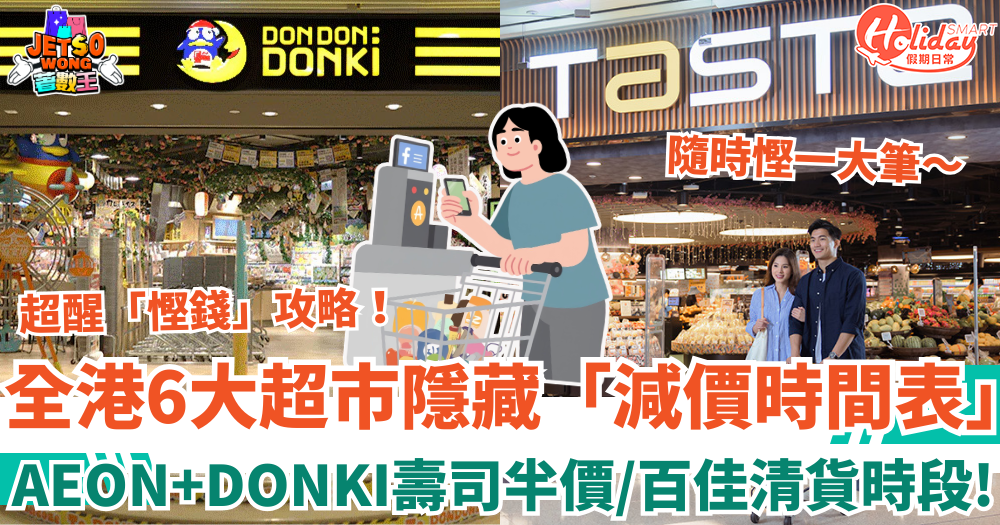 「慳錢」絕對是一門易學難精的學問~小編今次就醒大家其中一個慳錢攻略!原來全港6大超市(包括 DONKI、AEON、一田等)隱藏著一份「減價時間表」,為了保持食物質素及避免浪費,店家會在特定時段為即日到期的熟食貼上減價貼紙,由8折一路劈至半價,每日Mark實時間去掃貨,隨時搶到平貨慳一筆,即往下睇詳情!