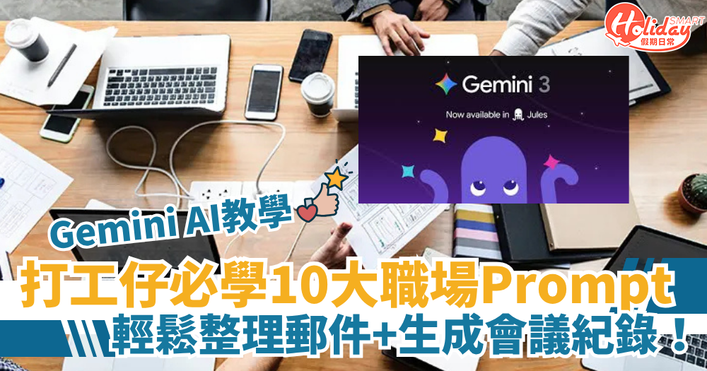 Gemini在香港解禁後,成為打工仔不可或缺的辦公助手。掌握這10大職場Prompt,無論是郵件處理、會議紀錄、財務分析、客戶反饋整理,還是行銷策劃與出差安排,都能有效節省時間,提升辦公效率,助你準時放工。