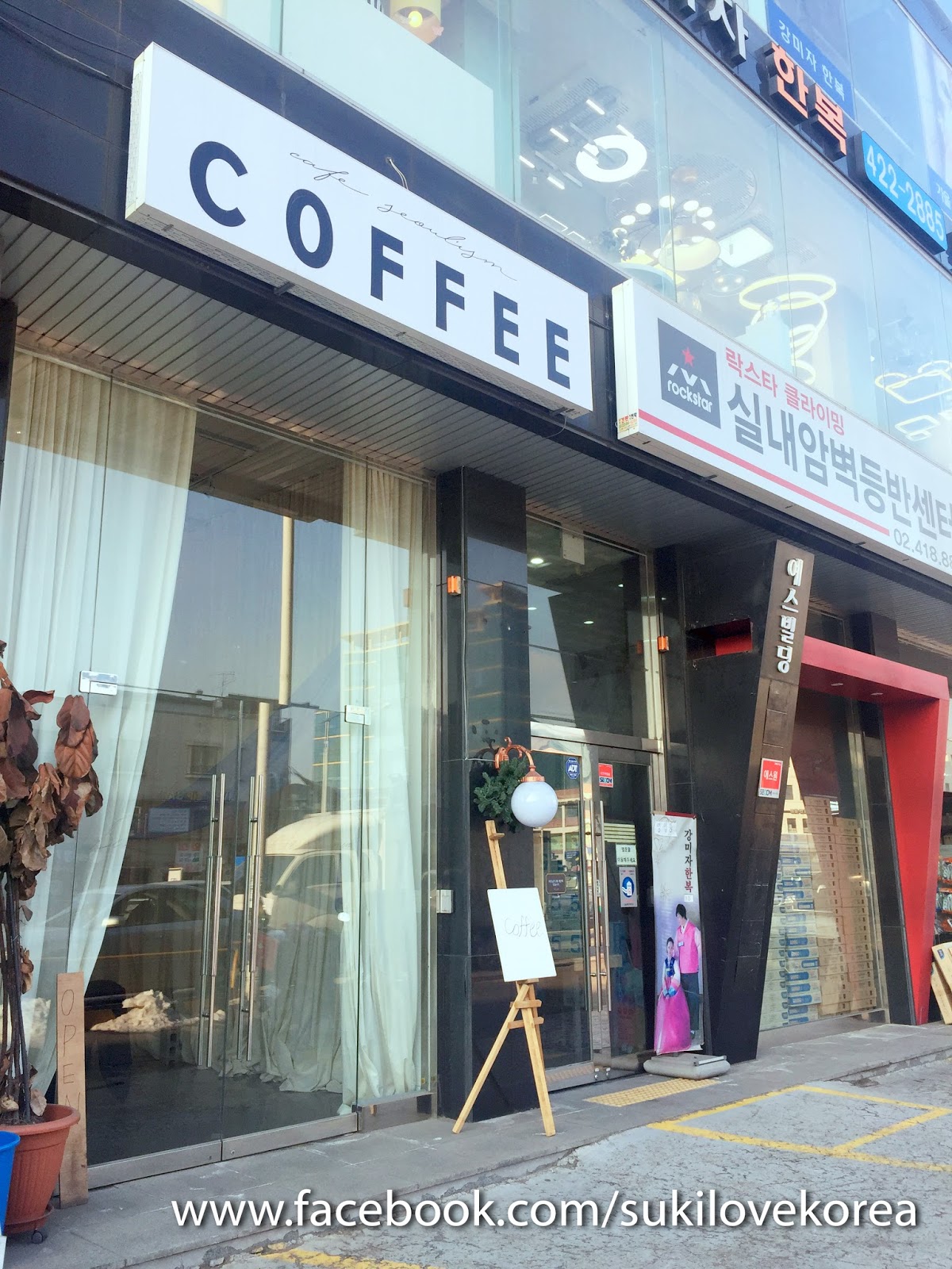 這家咖啡店分別在同一建築物內有三個樓層,大家在建築物的地舖便會找到此店,但要留意他們的招牌雖然很大,但很難看!因為不是用韓文,而是大大隻 “COFFEE”字樣,店名則細細隻草寫英文 ”café seoulism” , 所以我們都miss了兩次才找到!