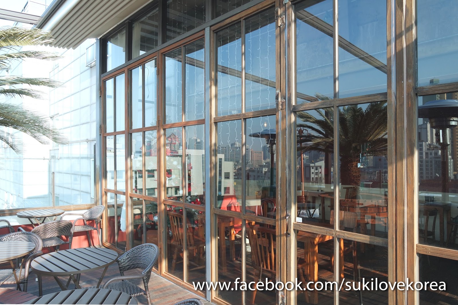 一道大大的玻璃窗走出去便是一個露天戶外小亭園!大家可以坐在這裡嘆咖啡遠眺清析高樓。。。樂天世界塔(lotte world tower) !