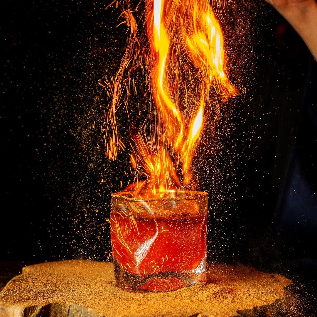 “Phoenix Fire” which features a spectacular flame show with each serving of orange juice, lime juice, grenadine, and rum. This citrusy cocktail ignites with a dramatic flame, transforming into a refreshing blend of orange, lime, grenadine, and rum. It's a performance, a story, and a taste of legend in every sip.