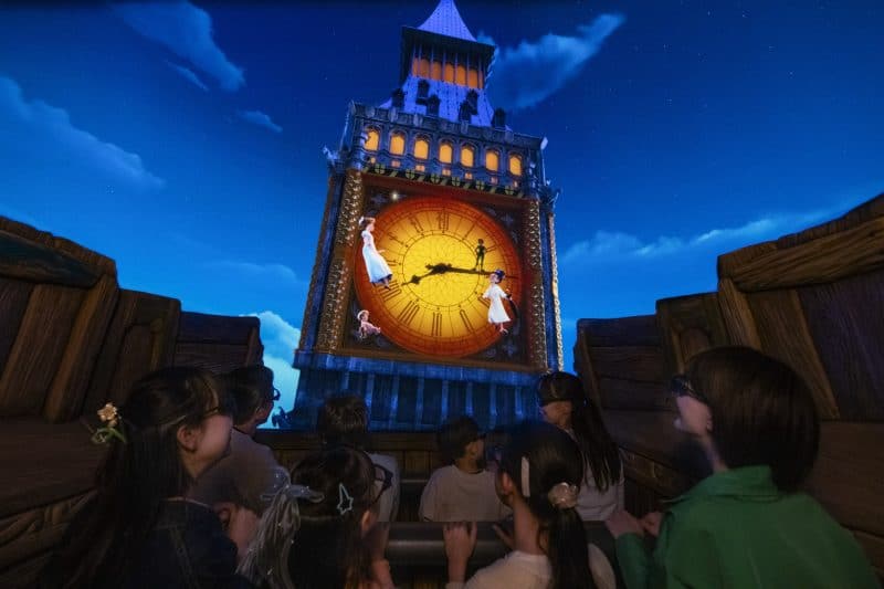 Soar through Neverland with Peter Pan at Tokyo DisneySea's Fantasy Springs! Join Peter, Tinker Bell, and the Lost Boys on a 3D adventure to save John from Captain Hook. Get ready for mermaids, pirates, and iconic locations like Skull Rock! It's a 6-minute thrill ride perfect for adventurers over 102 cm.