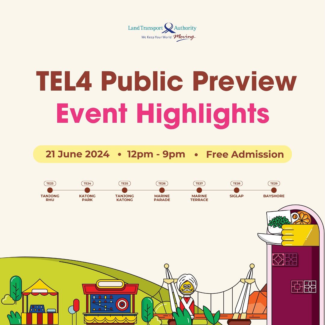 Mark your calendars! The highly anticipated Thomson-East Coast Line (TEL) 4 is finally here, and to celebrate its grand opening, there are exciting events happening across all stations throughout the day on Friday, June 21st, 2024, from 12:00 PM to 9:00 PM. Embark on a free train ride journey through colors of the east before the 7 new TEL4 stations open for passenger service on 23 June 2024!