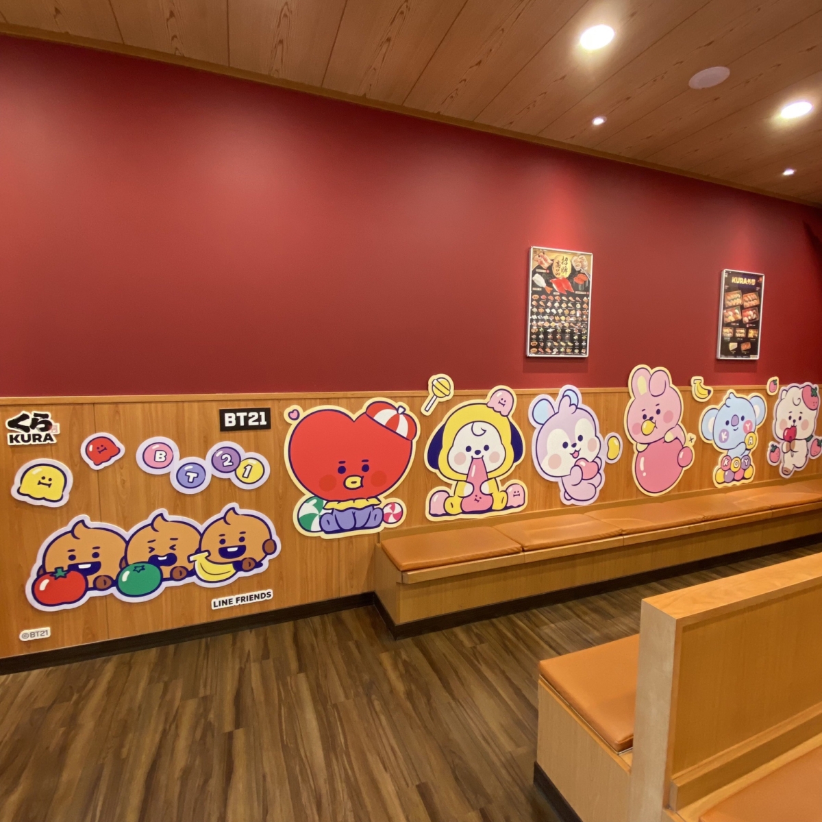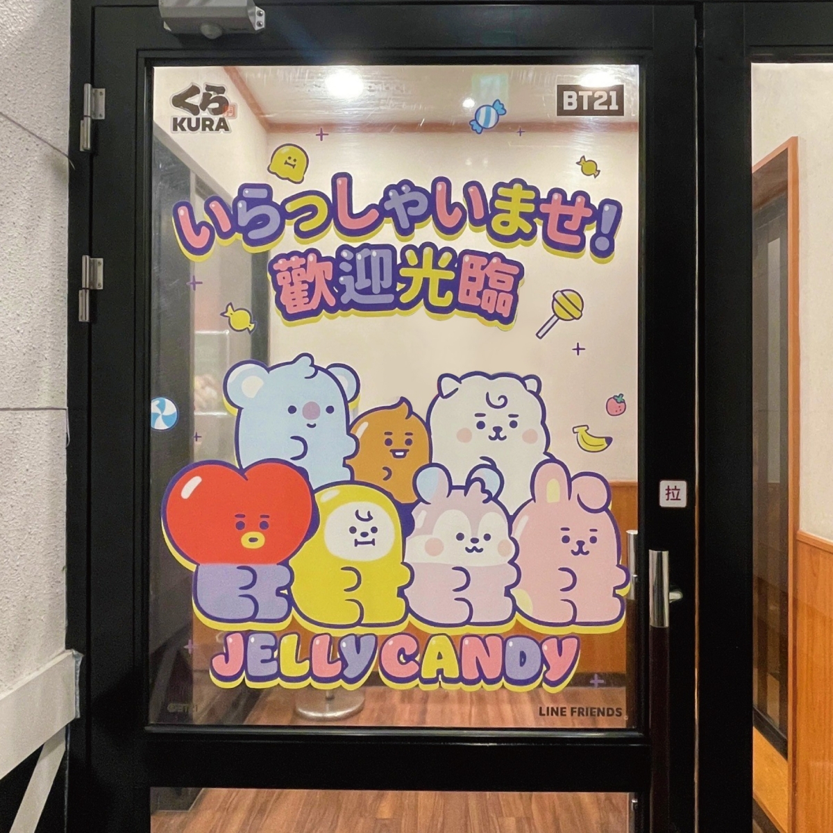為讓粉絲用餐時更能融入BT21的童趣氛圍,在藏壽司基隆中正信三、台北館前、台中惠文路以及高雄岡山4間門市更以「Jelly Candy」繽紛色系佈置。且只要參與官方社群活動,上傳和BT21特色佈置的合照,就有機會獲得BT21 Hope in Love系列抱枕,萌萌軟軟超級療癒!