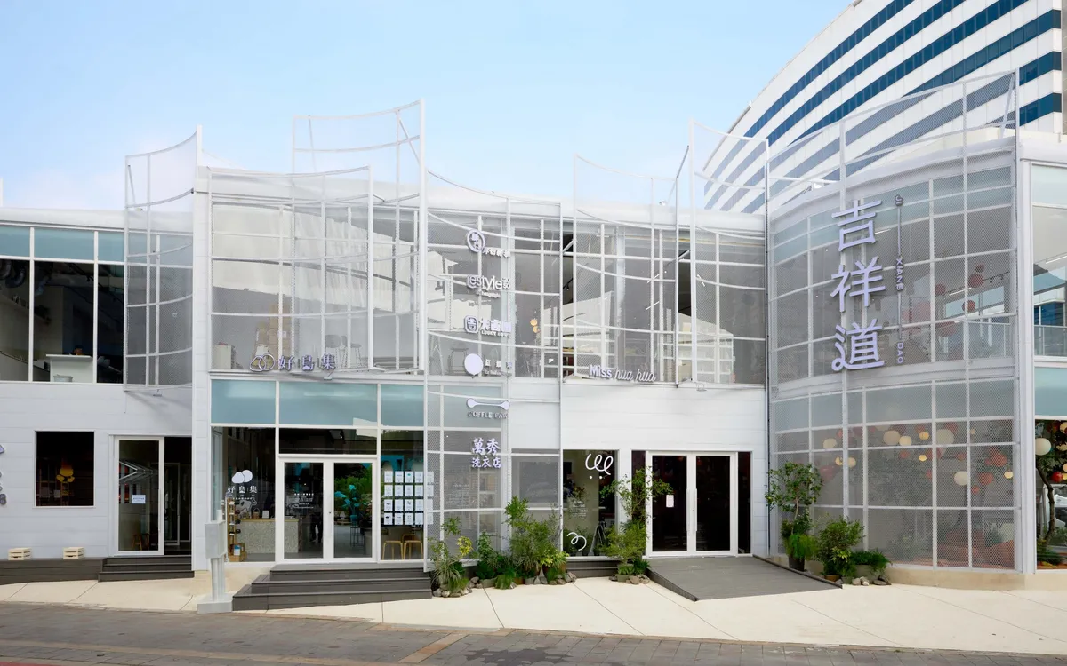 不同於傳統購物百貨空間,由達永建設策劃的「吉祥道」,以純白的兩層建築,打破過往垂直式的高樓形式,提供更寬廣的休憩場域,並同時以台式排檔、生活選物、共享廚房及獨立書屋作為四大空間設計,吃喝玩樂需求一次滿足。