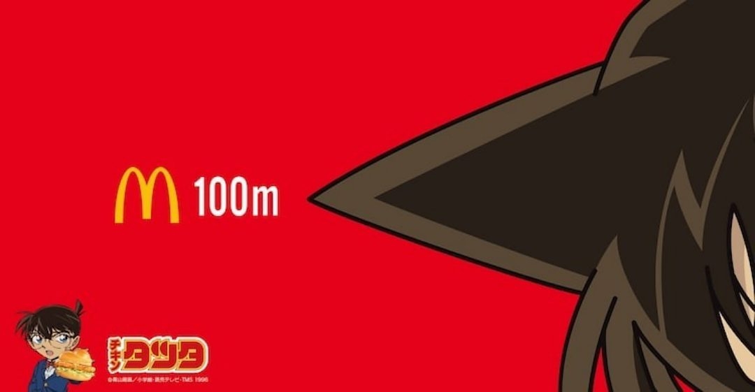 不僅將小蘭獨特的尖髮造型體現在炸雞漢堡上,麥當勞更直接將其變成路邊箭頭,示意路人指標方向100公尺可以通往麥當勞!創意宣傳讓人會心一笑,不少影迷也表示要去澀谷朝聖一番,但也有網友直呼:別再玩小蘭啦!