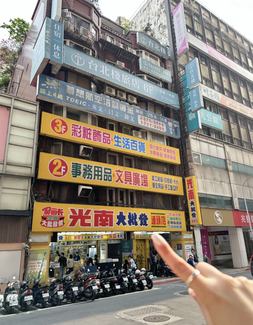 這位香港女生睽違4年來到台北,興奮地於小紅書上分享來台第一天就直衝「光南大批發」,位於在台北車站新光三越附近,非常方便。還介紹到整個賣場共有三層,一樓為影音與電子配件,二樓為文具區,三樓則是彩妝保養品。若是學生時期來逛,肯定會失心瘋!