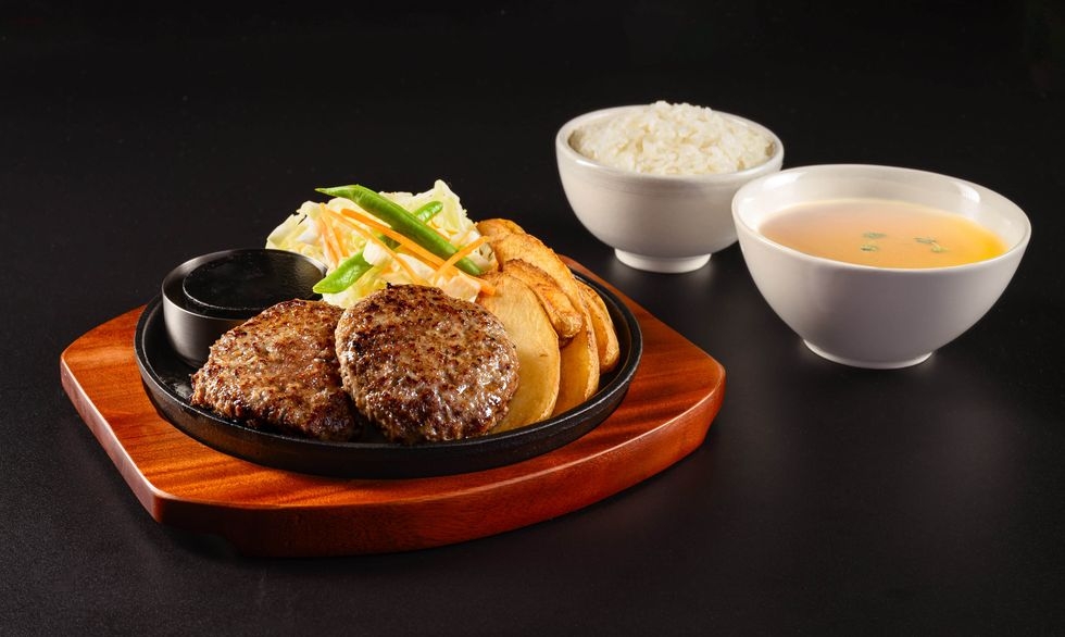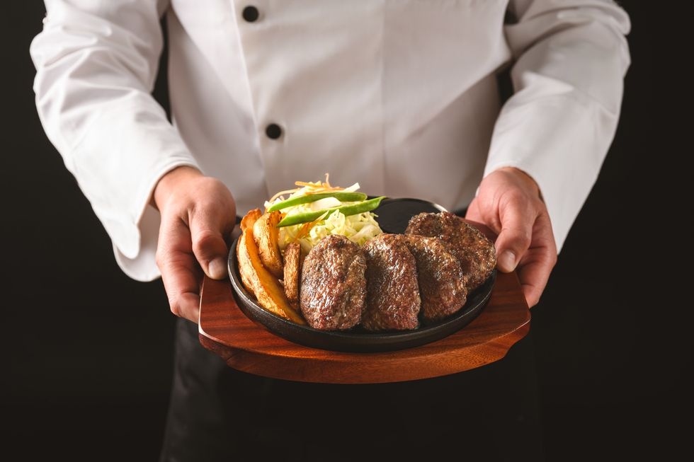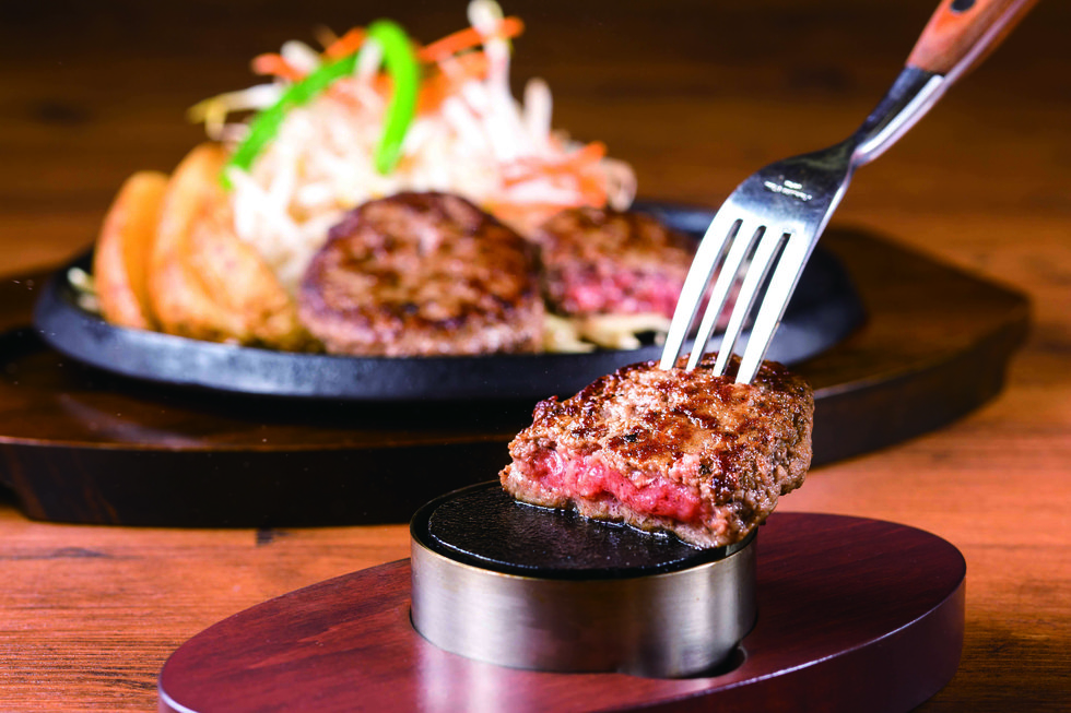 「肉的長谷川」主打每日新鮮現做漢堡排,招牌餐點「100%純牛肉漢堡排」遵照肥肉與瘦肉黃金比例搭配,並由日本師傅親自來台傳授製作秘訣,透過拍打讓牛絞肉緊密結合,以鐵板炙烤將美味牢牢鎖進漢堡排,原汁原味呈現。