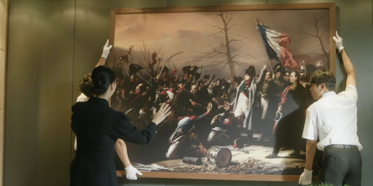 在前面的劇集中,尹殷盛(朴成焄 飾)送給洪滿臺會長一幅拿破崙畫作,來討得會長歡心,卻狡猾地在畫中藏有針孔攝影。這幅畫名為《Napoleon's Return from Elba》,紀錄拿破崙流亡後回歸法國的場景,但卻還是敗於滑鐵盧戰役。似乎是暗示尹殷盛結局會以失敗收場,最後洪家也將此幅畫換為全家福合照。