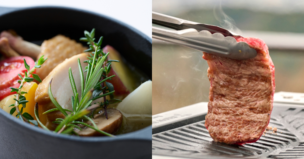 餐點提供以在房內用餐的形式進行,精心挑選九州當地新鮮食材,交由米其林大廚吉武廚師烹調成法式料理,由工作人員送至客房享用。同時提供Snow Peak的戶外裝備,部分餐點可以客人體驗自炊的樂趣~另外園內「TAKIBI Lounge」提供各式飲品,讓住客邊欣賞營火及夜景小酌一番。