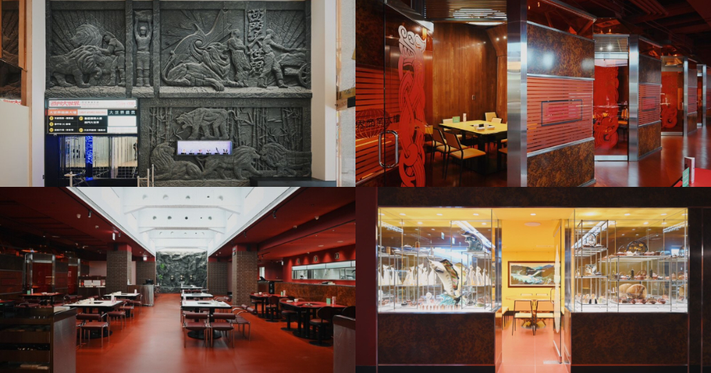 詹記這回重磅進駐西門商圈,選址於大世界商業大樓地下B1,原本為大世界戲院。新店擁有300坪大空間,裝潢設計找來「本事空間製作」操刀,以深紅色為基底、1990年代風華為樣本,打造出別具特色的摩登台風,像是巨石浮雕、藝品店展示櫥窗等等,還有3D藝術家Dorairolg(黃海恩)創作的「超現實火鍋古物」。