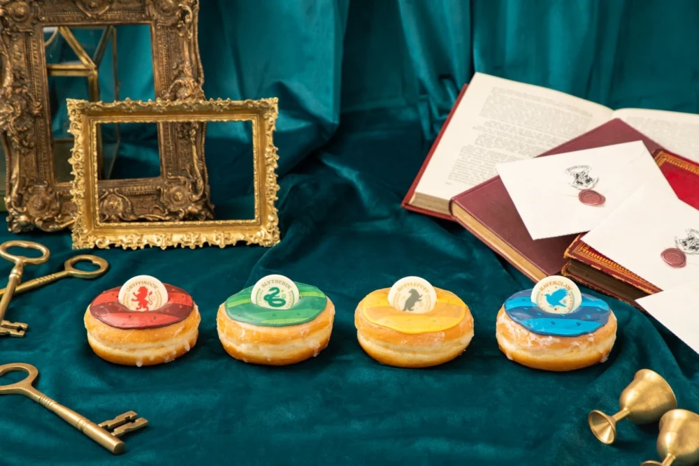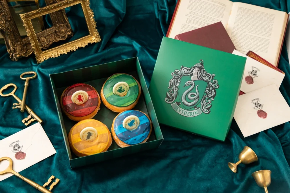 外帶餐點以《哈利波特》中最經典的「四大學院」為靈感打造,包含套裝組合可以自選精美外盒,不論收藏或送禮都超推薦!還有備受歡迎的甜甜圈,同樣以不同顏色的糖霜來還原四大學院的代表色,中間甚至還有院徽圖案的白巧克力!