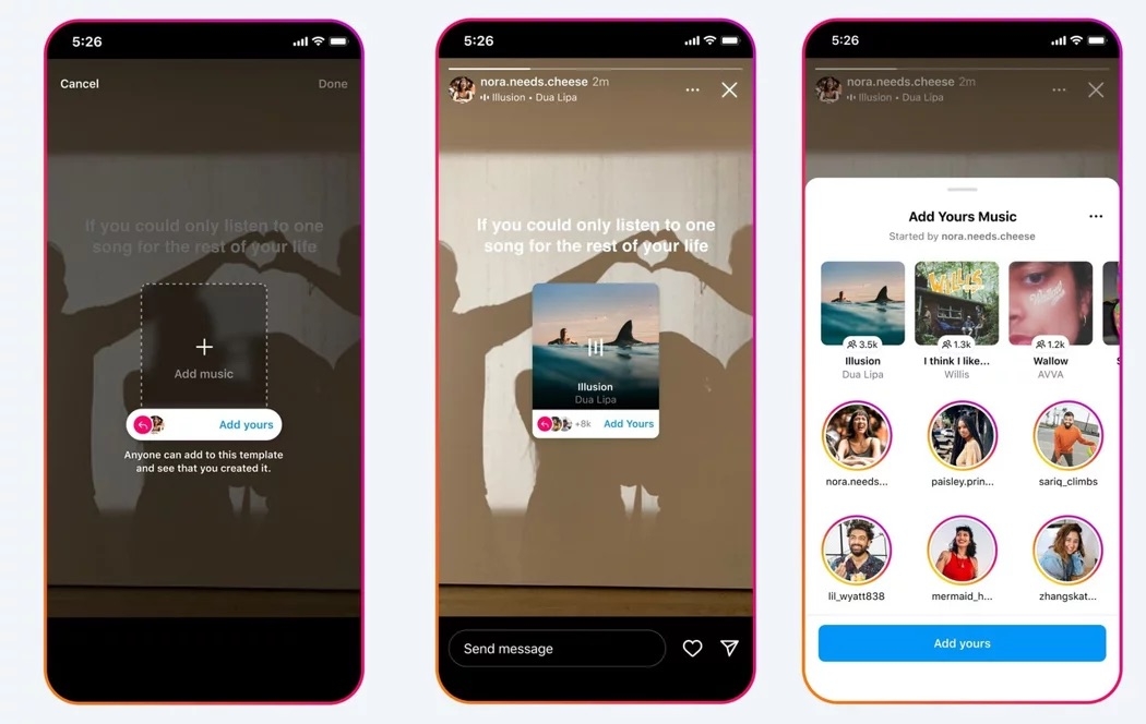 現在也能用音樂蓋大樓了!「輪到你了」這項功能可以建立或是響應別人的活動,例如「手機裡的廢照片」、「4年前的我」等等都曾引起熱潮。這次「輪到你了」音樂採用相同模式,讓用戶與追蹤者可以分享音樂,號召其他有所共鳴的人。