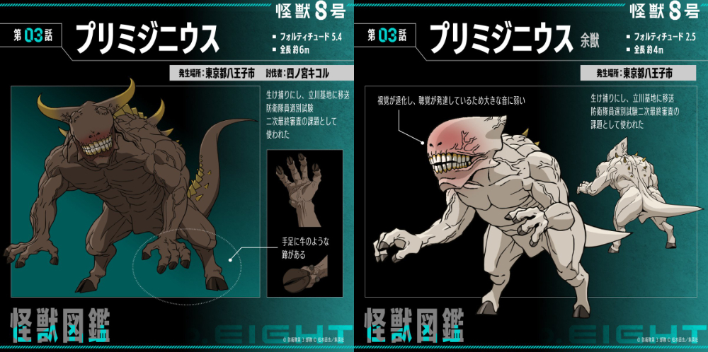 動畫《怪獸8號》由Production I.G製作,代表作包含《排球少年!!》、《攻殼機動隊》等系列作品。無論是畫面、場景和設定全都能看出製作組的用心,像是劇中路人對於怪獸警報出現的不耐煩表現,或是卡夫卡清理怪獸屍體的詳細描述,讓人體會到並不是想像中那麼輕鬆,這些充滿細節的世界觀都讓人看了相當過癮!