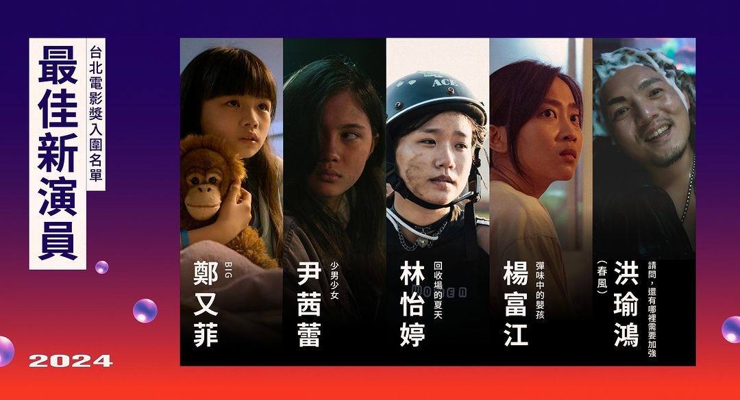 除了男女主角與配角,近年也愈來愈多人關注新人演員,期待他們未來在影壇大放異彩!本屆入圍「最佳新演員」名單包含:《BIG》鄭又菲、《少男少女》尹茜蕾、《回收場的夏天》林怡婷、《彈味中的嬰孩》楊富江以及《請問,還有哪裡需要加強》洪瑜鴻(春風)。