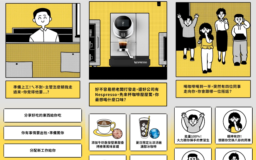 大多社畜們最不想聽到的便是老如惡魔般闆走過來的腳步聲……究竟又有什麼任務交代或事情出包?心裡會先演上一堆小劇場。而好不容易把老闆打發走後,非常需要一杯咖啡壓壓驚,卻突然有同事走向你,又到了該展開社交模式的時刻。