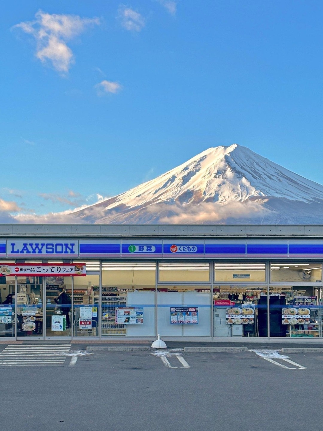 富士山過去最熱門的打卡點「LAWSON河口湖站前店」,是來到此地不可錯過的知名地標之一。不過也因為過多的人潮湧入,讓當地居民為了解決觀光公害而不惜扮起黑臉,現在的LAWSON前方只剩下一塊黑色布幕,雖然勉強還能看到富士山,但已不再像過去那樣,能夠拍出同樣漂亮的照片。