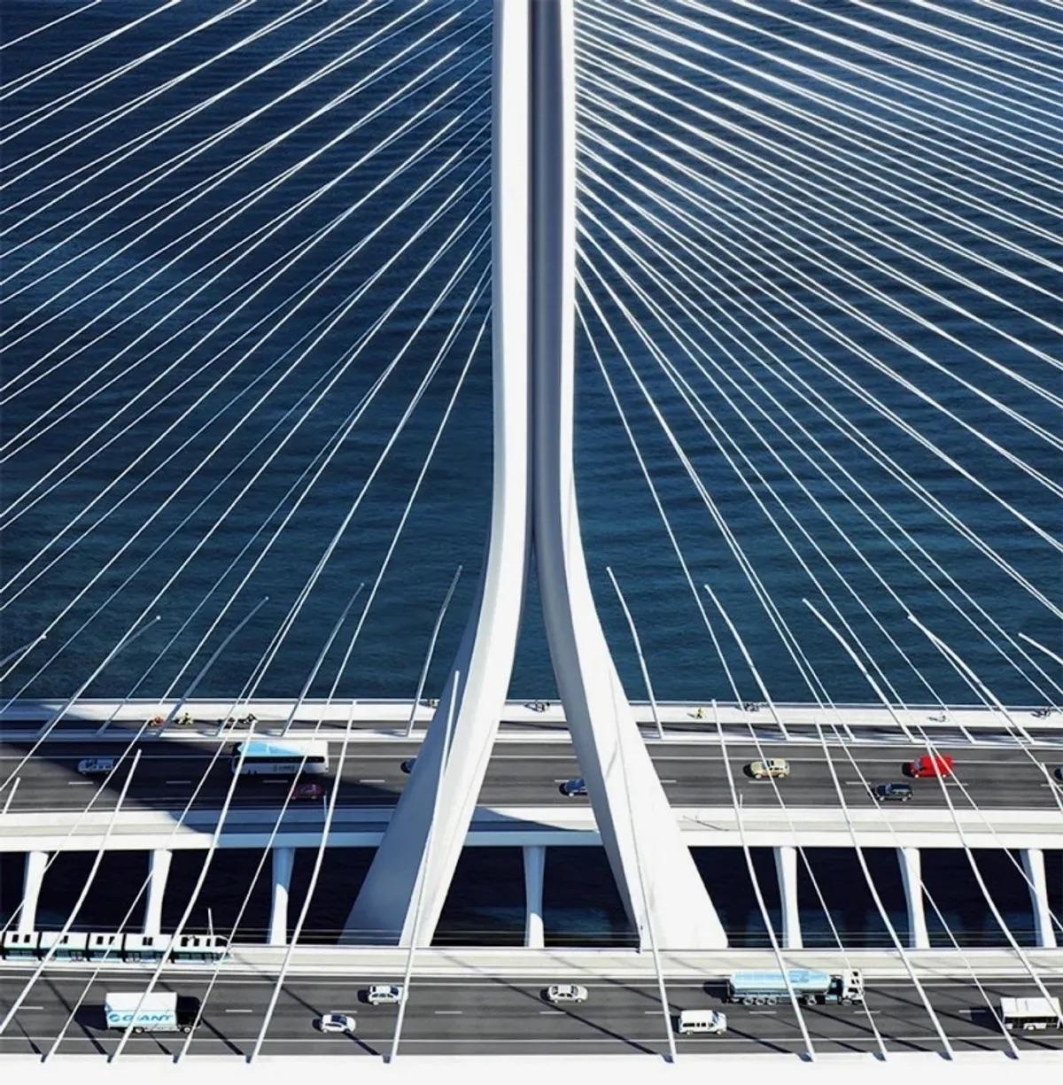 而淡江大橋背後的設計靈感,則是來自雲門舞集舞者們躍動的舞姿。主橋塔以雙手合十的意涵,傳遞為台灣祈福之理念,向上延展如同浴火重生的鳳凰般,展翅飛向天際。淡江大橋不僅是一項交通建設,更可以說是一件藝術品,將建築美學與工程技術巧妙融合。