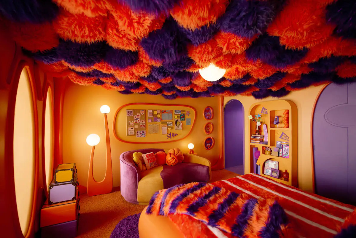 Airbnb這次推出的《腦筋急轉彎2》主題房,設計靈感來自電影中的大腦總部,外觀是一棟挑高的蛋形建築,周圍環繞著樹枝綠葉;內部則有多功能的情緒控制台和運輸記憶的管道,完美還原電影中的所有細節。入住的旅客還可以製作專屬回憶球,將美好時光收藏起來帶回家!