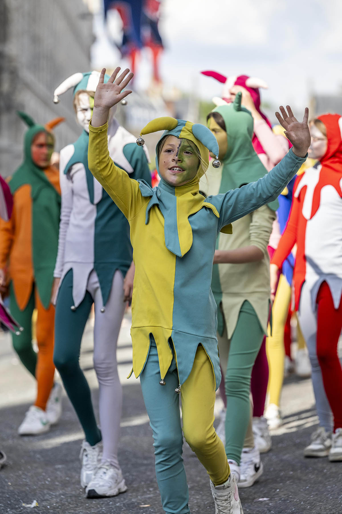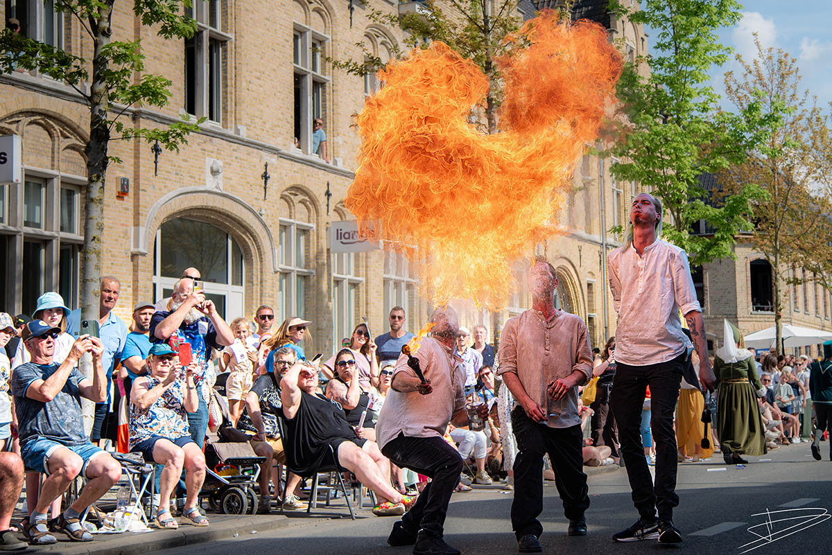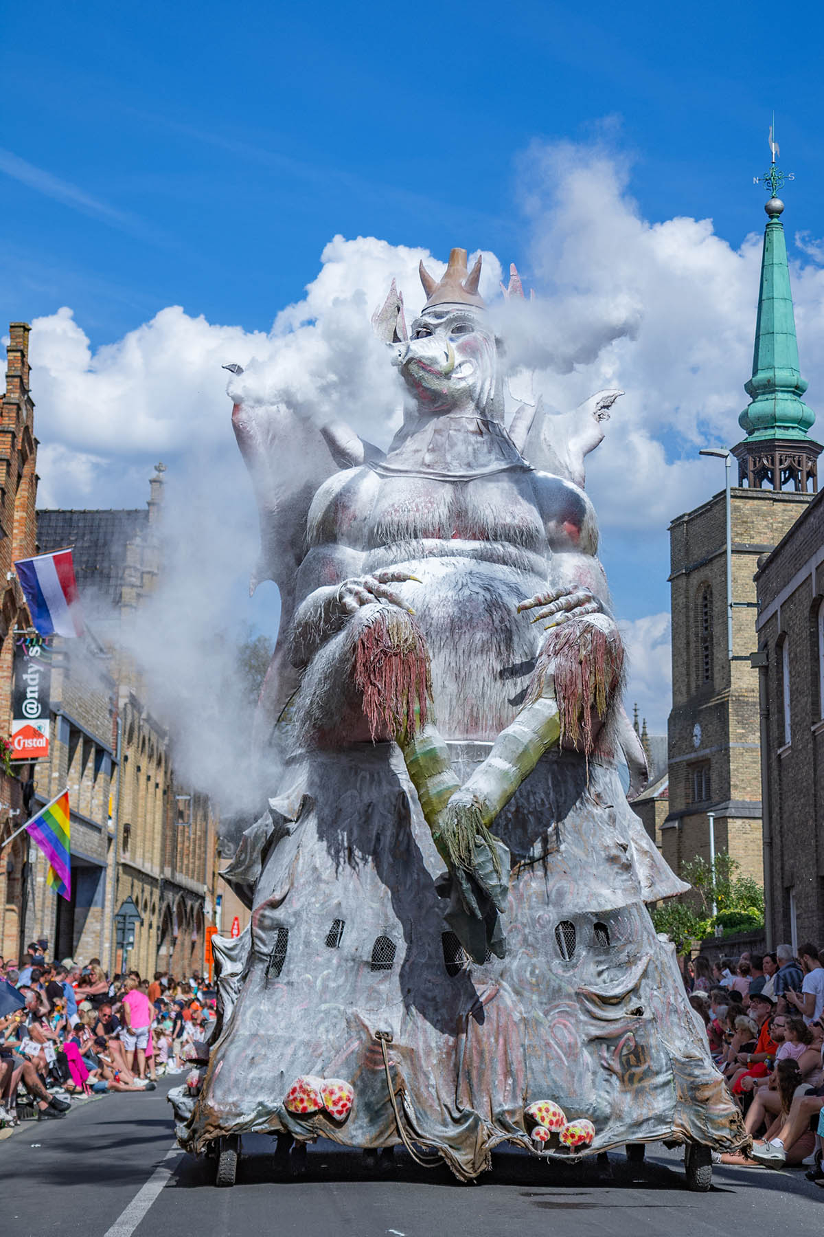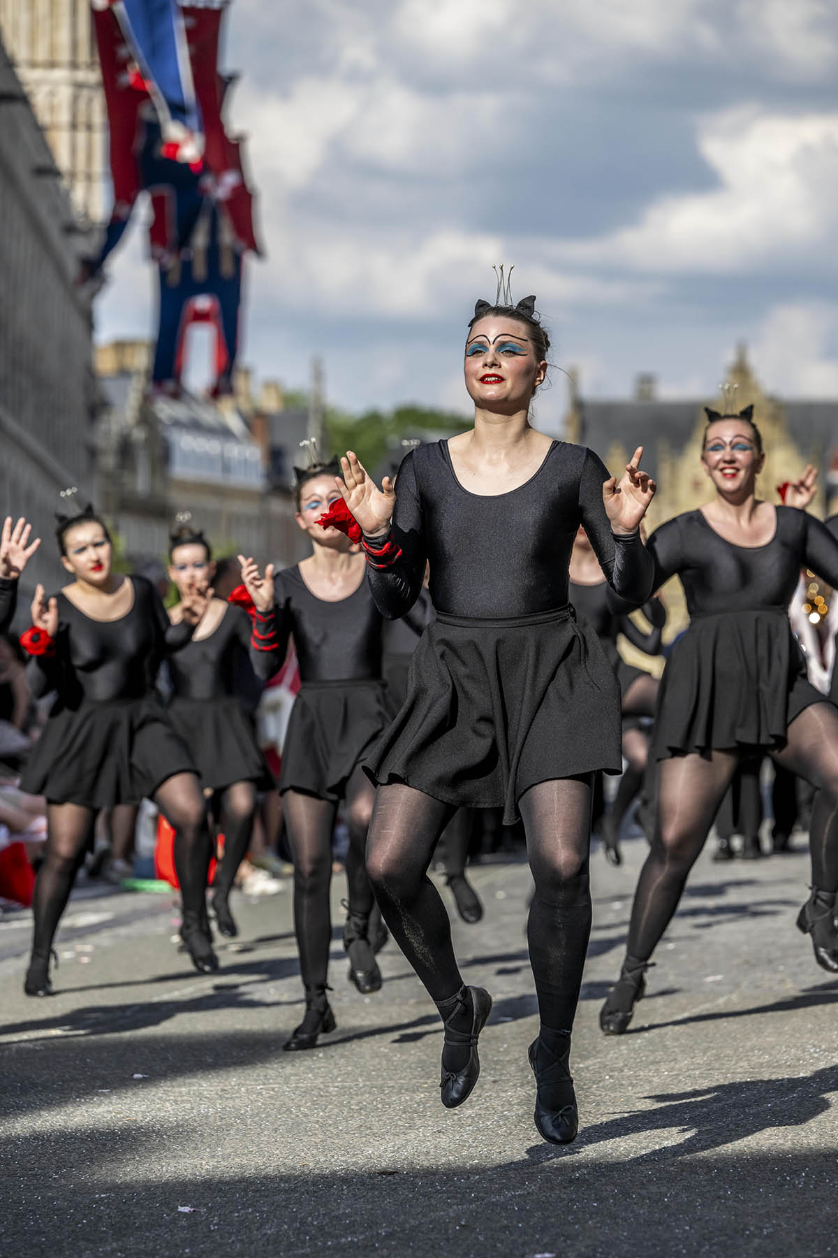 其中最引人注目的還有「貓花車」遊行。巨型貓花車高達六、七公尺,各種扮相的貓人載歌載舞,一邊「喵」叫一邊向路邊拋撒糖果,引起人群歡呼聲不斷。每個花車隊伍更有不同主題,有的展示伊珀爾歷史,有的則以貓咪童話故事為題材,整個遊行充滿了創意和驚喜。
