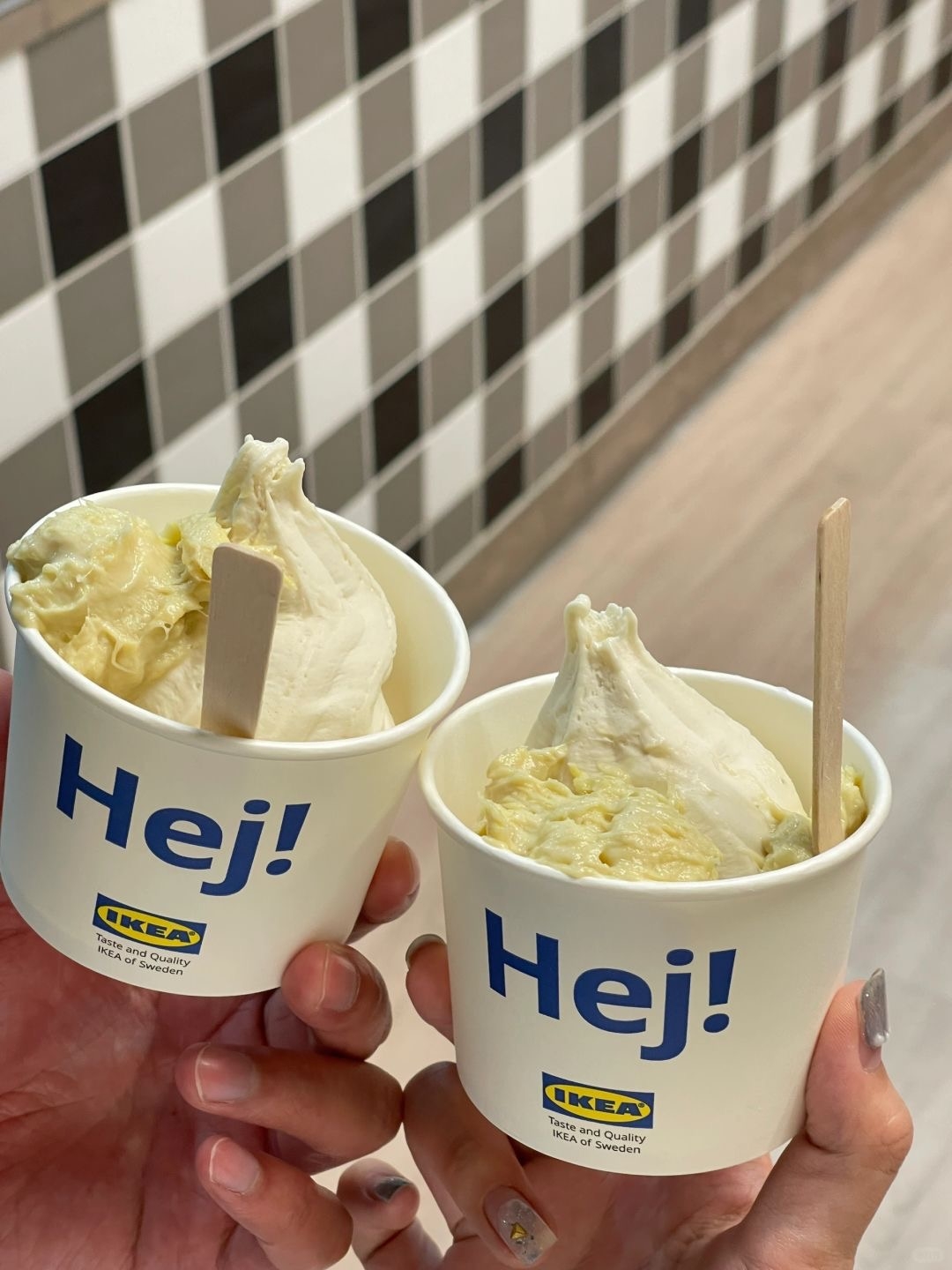 2024 IKEA榴槤季,首先登場的是7/1~7/14的「甘榜榴槤霜淇淋」,口味偏甜,適合初次品嚐榴槤的人;接著是7/15~7/28的「蘇丹王榴槤霜淇淋」,口味甜而不膩,果肉厚實綿密,搭配霜淇淋的冰涼口感,吃起來回味無窮;最後是7/29~8/11的「貓山王榴槤霜淇淋」,果泥細緻軟嫩,香氣濃郁,口感絲滑,吃完保證唇齒留香。