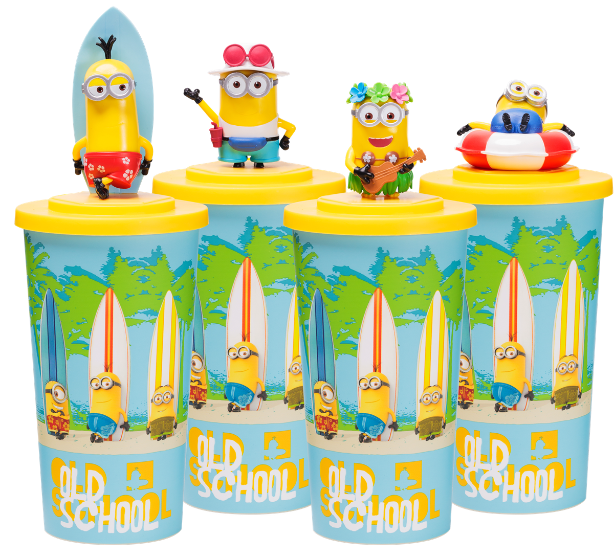 包含了一份中爆米花、一杯中杯飲料、一份熱食,以及一個小小兵公仔造型杯飲料。而公仔造型杯一共有四款不同設計,包括夏威夷風的Tom、享受日光浴的Tom、衝浪的Kevin和戴著紅墨鏡的遊客Dave。不論哪一款都超級可愛,喝完飲料後還可以收藏當擺飾~