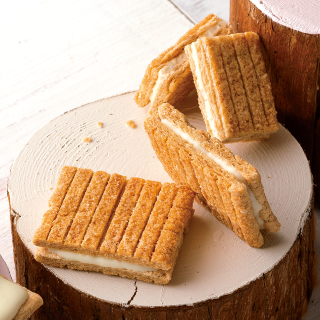不同於一般餅乾,餅乾底為裸麥、黑麥、燕麥等七種不同穀物混合,並撒些砂糖提升口感層次,搭配白巧克力奶油內餡剛剛好~