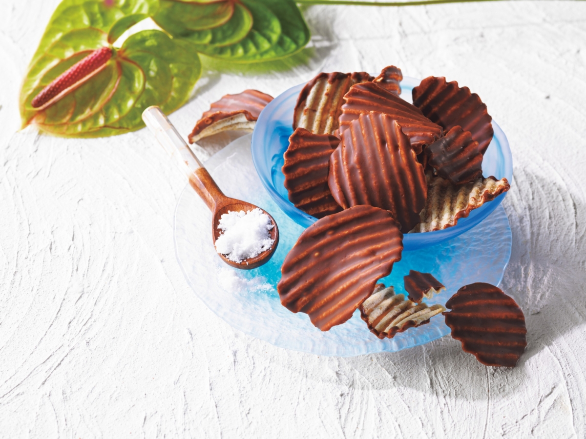 Royce’雖然以主打各種口味的生巧克力聞名,但另一熱門品項巧克力洋芋片也不錯過。洋芋片裹上巧克力,吃起鹹甜交織,不會過膩!